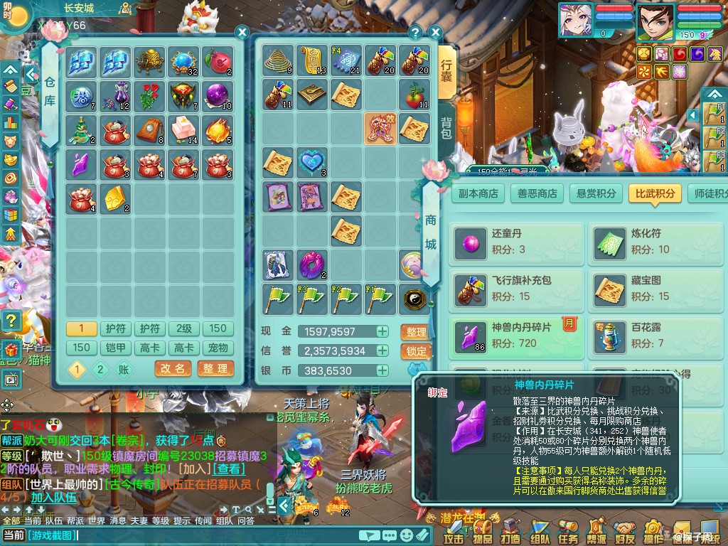 超凡入圣159tc 双人坐骑 西瓜冰武器皮肤 380w神武币 一内神 一龙姬 双镜子 11个满果子 2980邮箱可以七天换绑 1688包