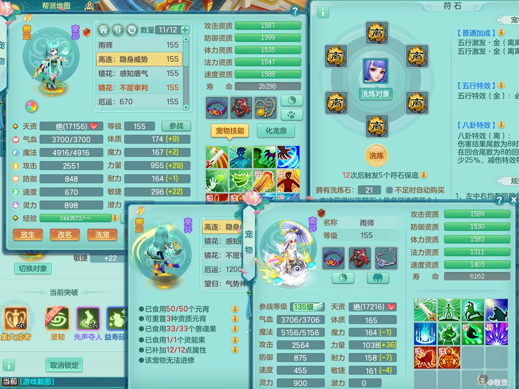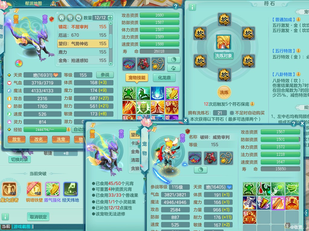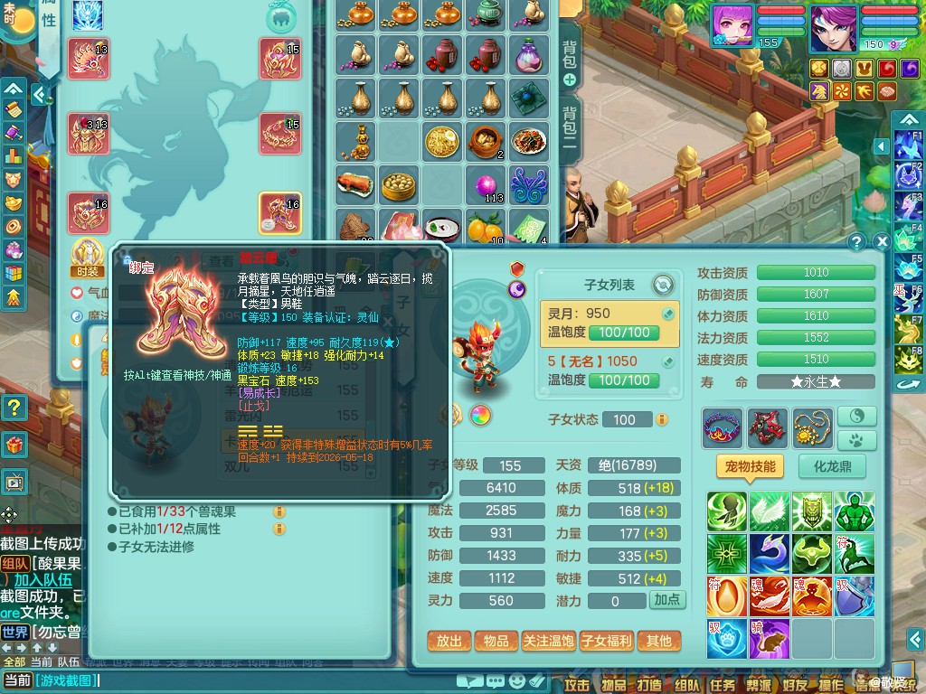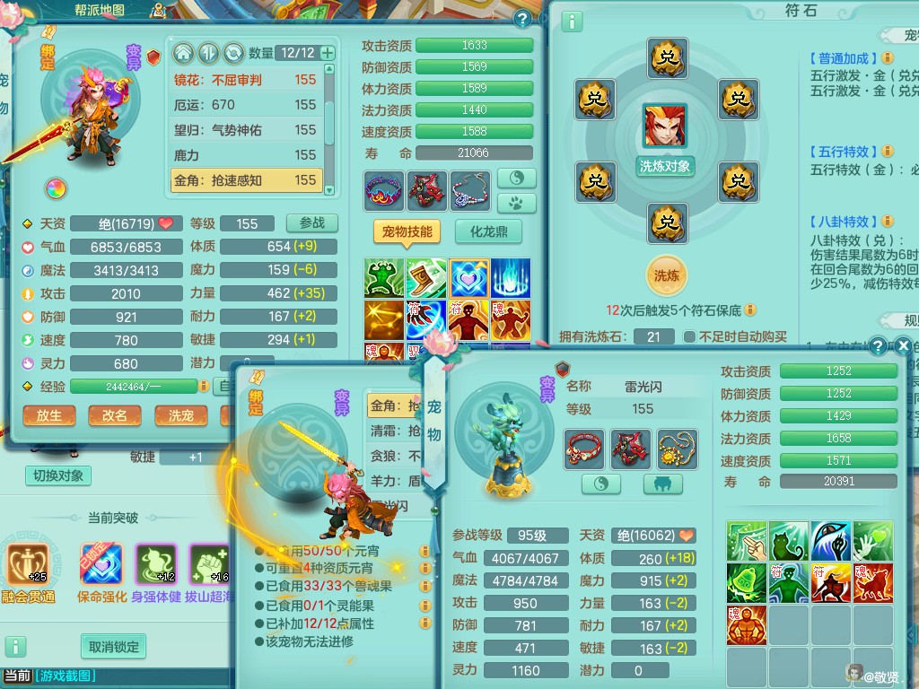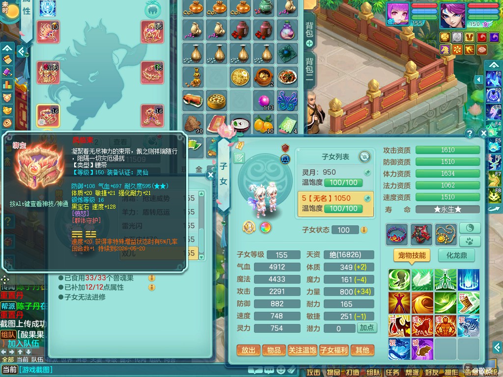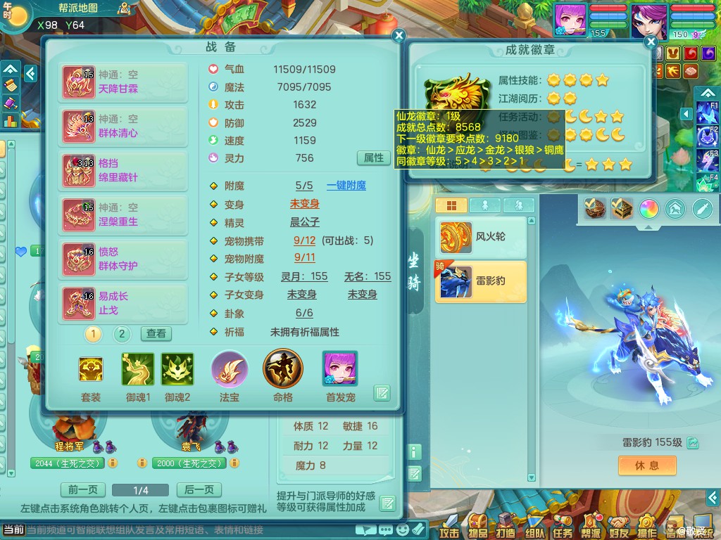 少年游159灵月 准潜龙(只差2件宠物衣服+符石两项)其他全满 九红愤怒六特 差不多10满果子 4666包