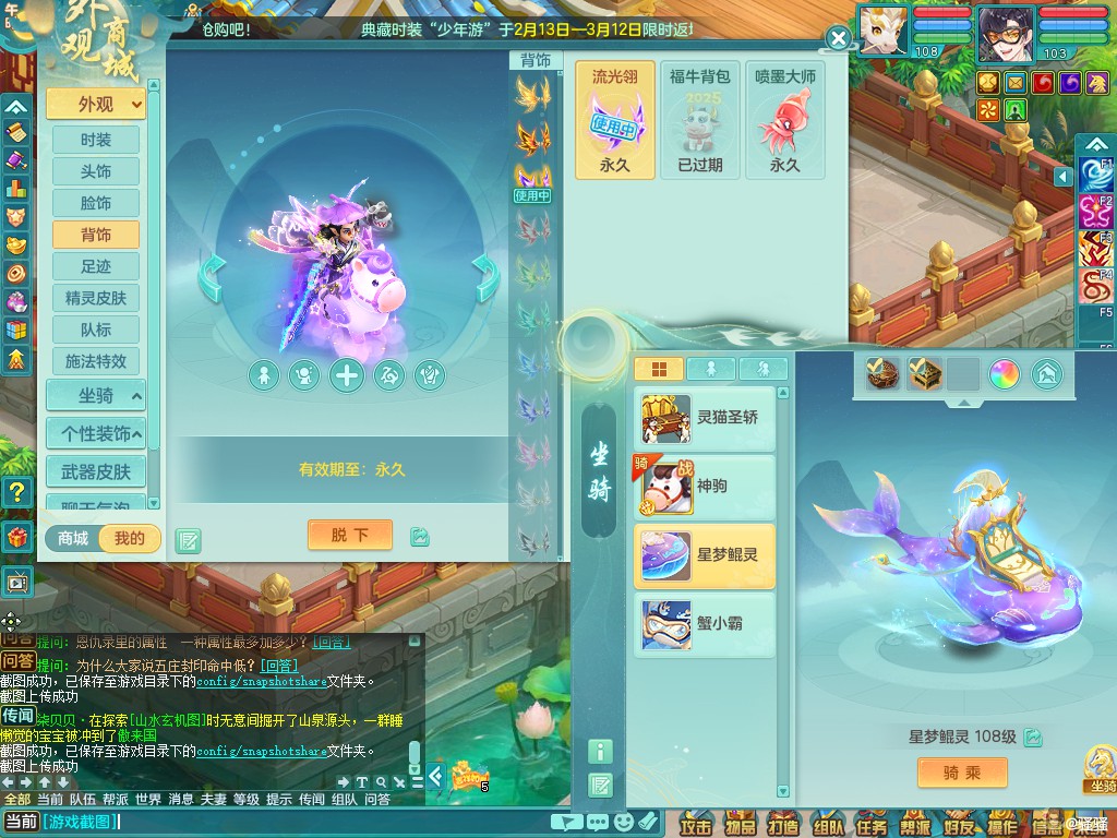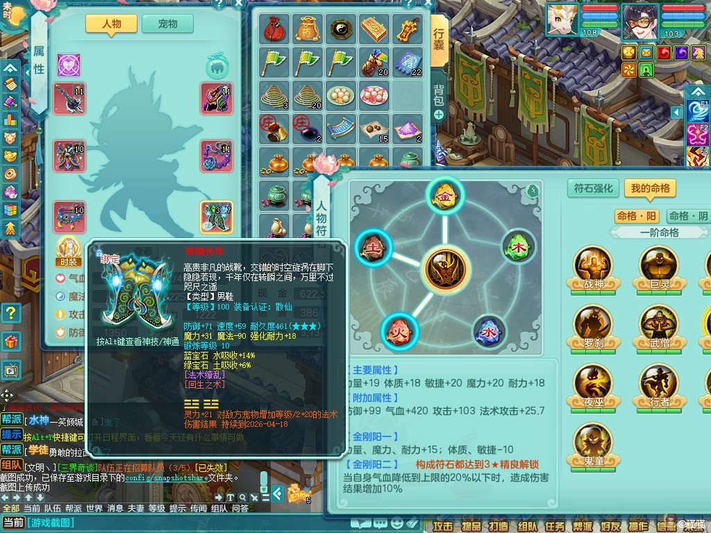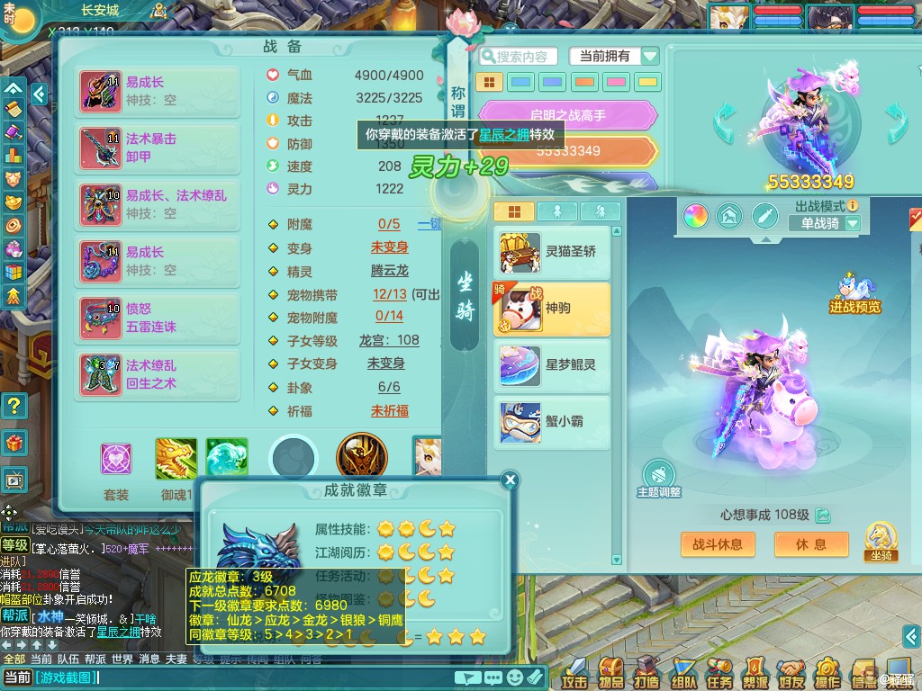 寒锋映雪/如你所愿103lg 法系神装星辰之拥 八位靓号id+15马心想事成+翅膀 三内丹神(两拍一存 还可存1)宝宝也很好 2980有双重可换绑