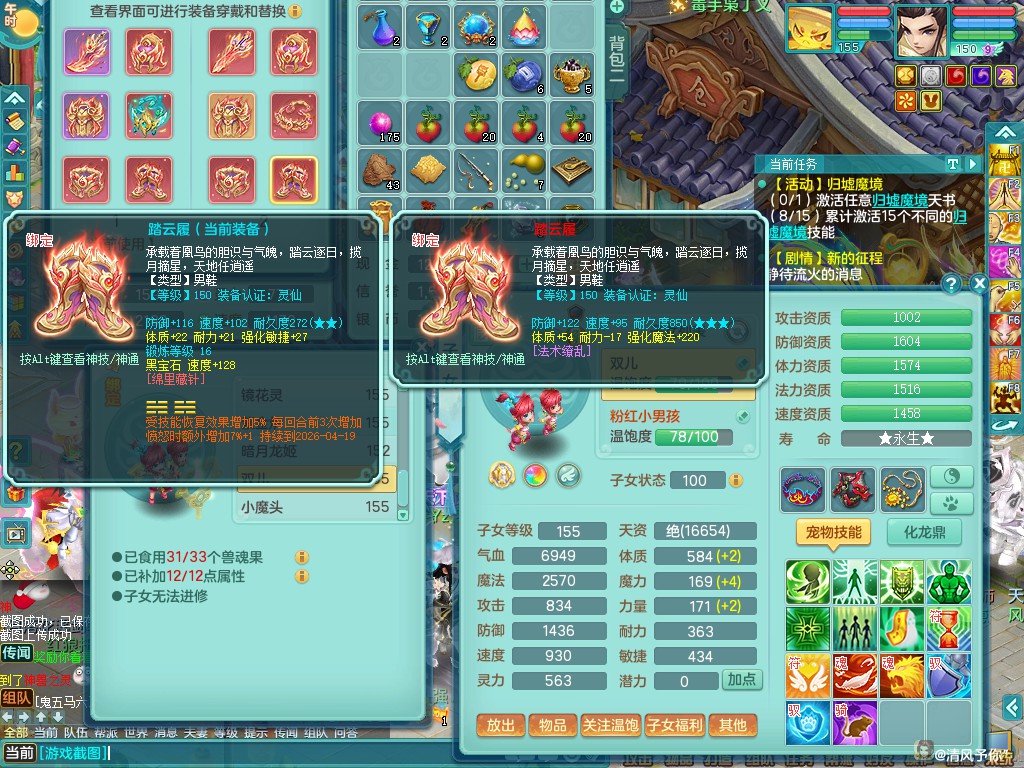 少年游159fm 潜龙在渊 双人坐骑 双法术絮乱半价可转 1内神 1龙姬 3镜子(可兑4镜)2980邮箱可以七天换绑 超低价6500包