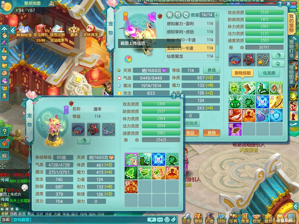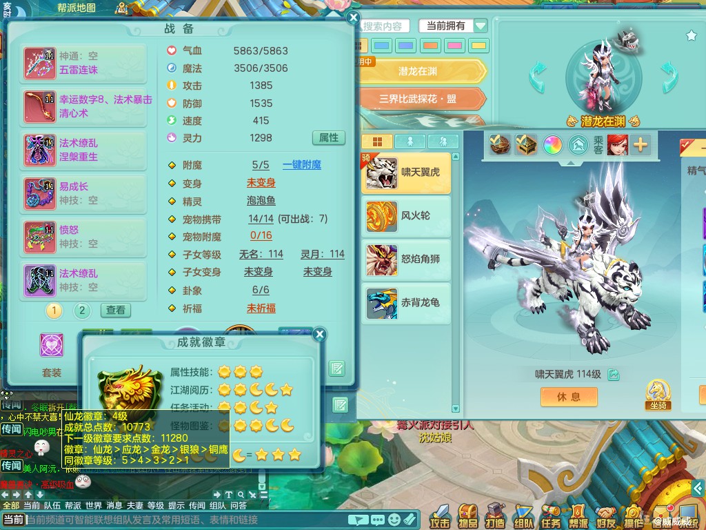 普天同庆109mw 潜龙在渊 双法术絮乱 星辰之拥环身 双内丹神 15个满果子以上 163邮箱可改密