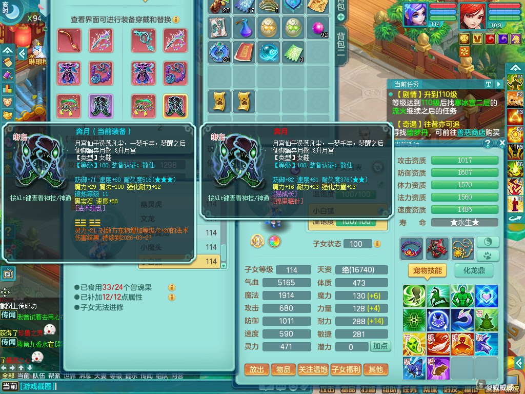 普天同庆109mw 潜龙在渊 双法术絮乱 星辰之拥环身 双内丹神 15个满果子以上