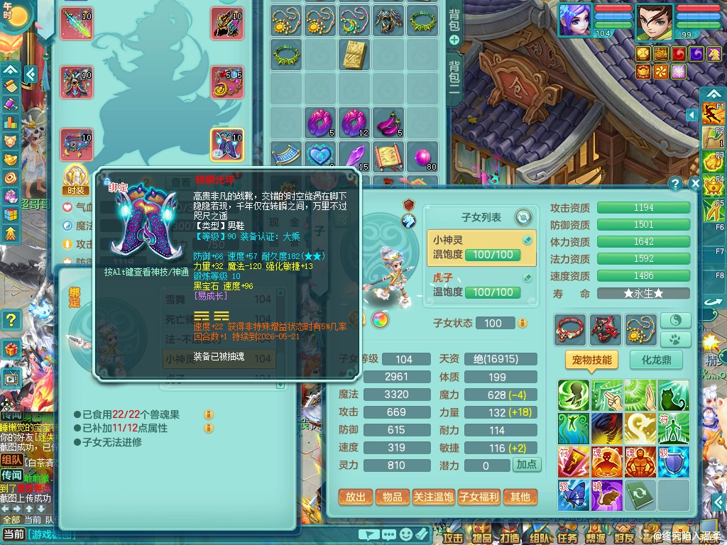 七窍玲珑99tc 潜龙在渊 成品装备 愤怒四海腰带 三内丹龙(另外47仙兽灵)三神兽(蛇蛇马,一内还可存1内)还150万swb可调整 特价出1.28包