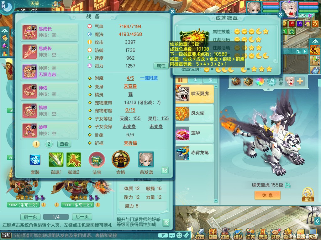 九天揽月159tc 装备好 双人坐骑 精