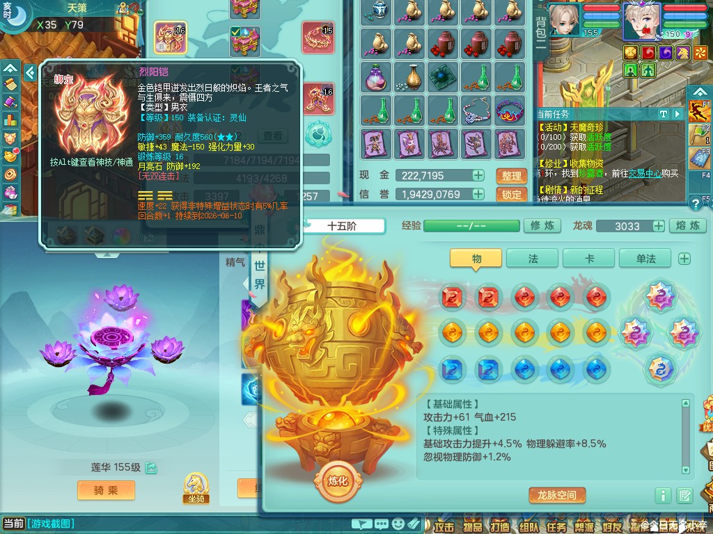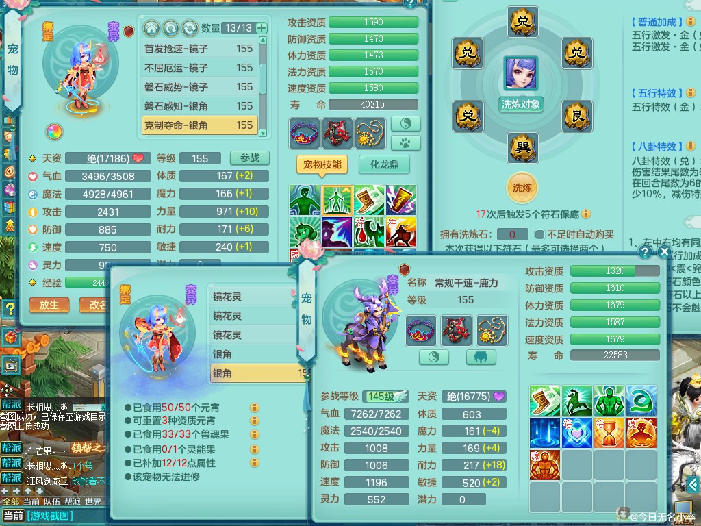 九天揽月159tc 装备好 双人坐骑 精灵之怒 一内丹小马 双龙姬 三镜子 7个满果子左右 2000包