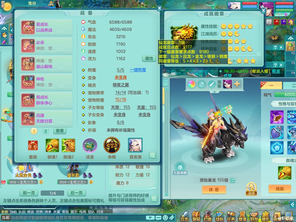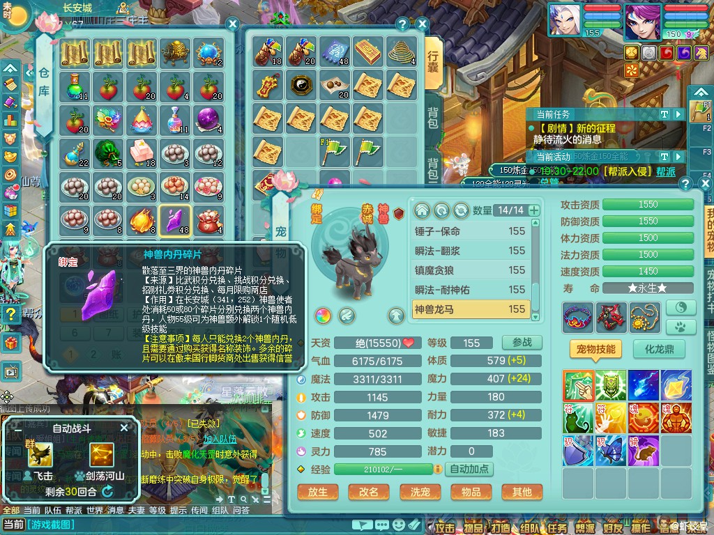 三生万物159ws 泰坦机甲龙+武器皮肤 准潜龙(差2个26+化龙鼎)装备小毕业 双内丹龙 一内神(还可存一神)2鹿 3镜子(可兑1镜)特价1.1包