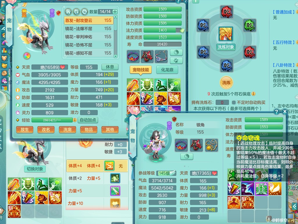 天下无双159mw 暴龙+15马心想事成+流光翼 潜龙只差一个26 双龙(一存)双内神(还可存一内)一龙姬 五镜子 20个满果子以上 游戏有双重认证便宜出1.6包