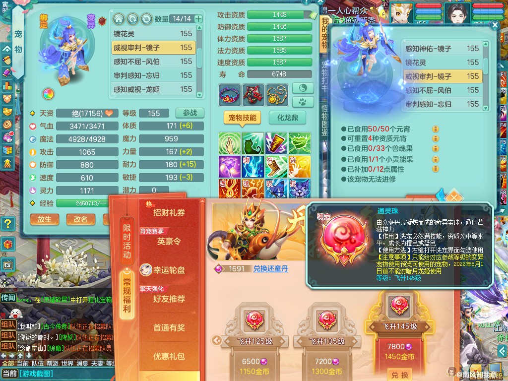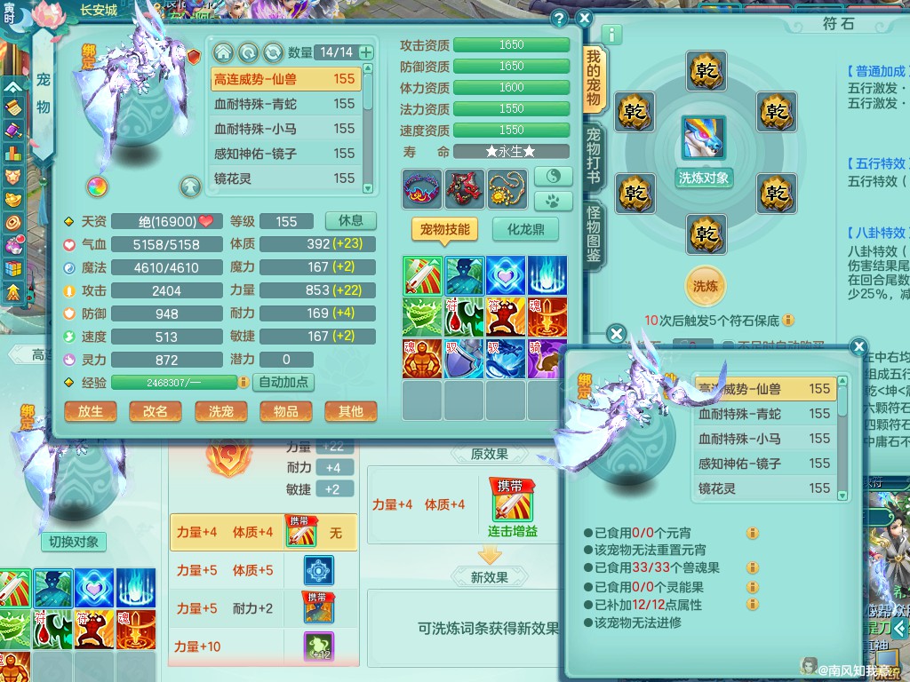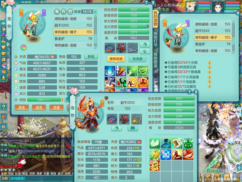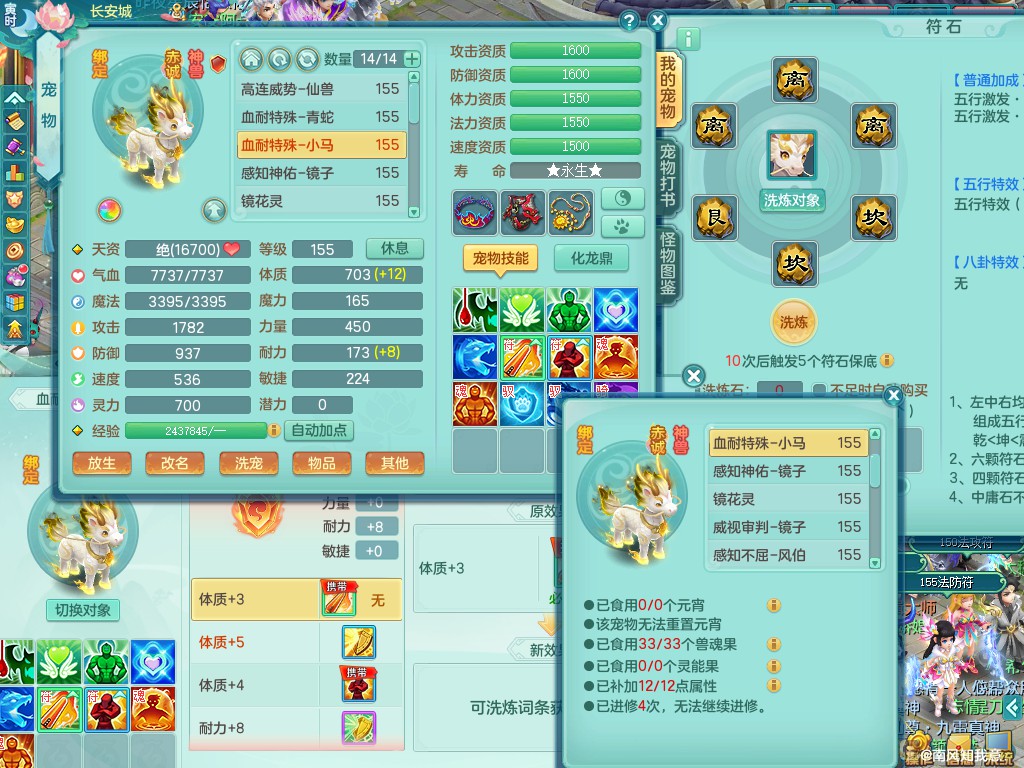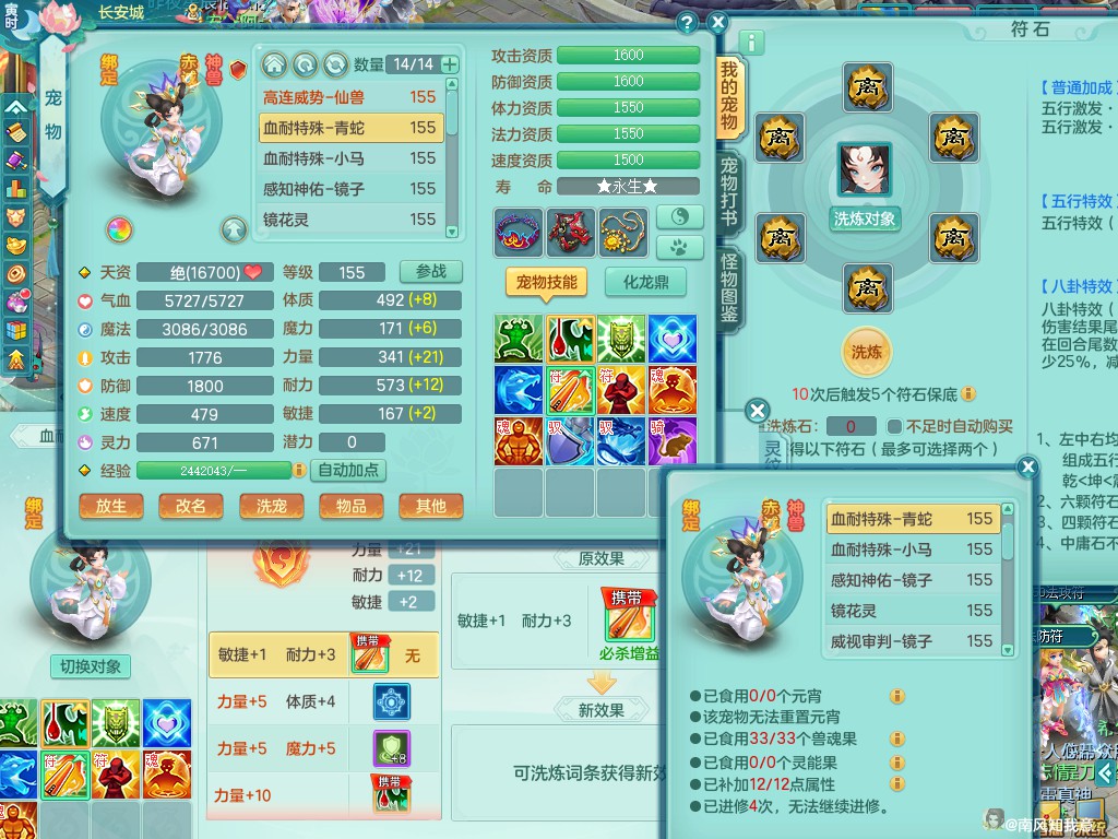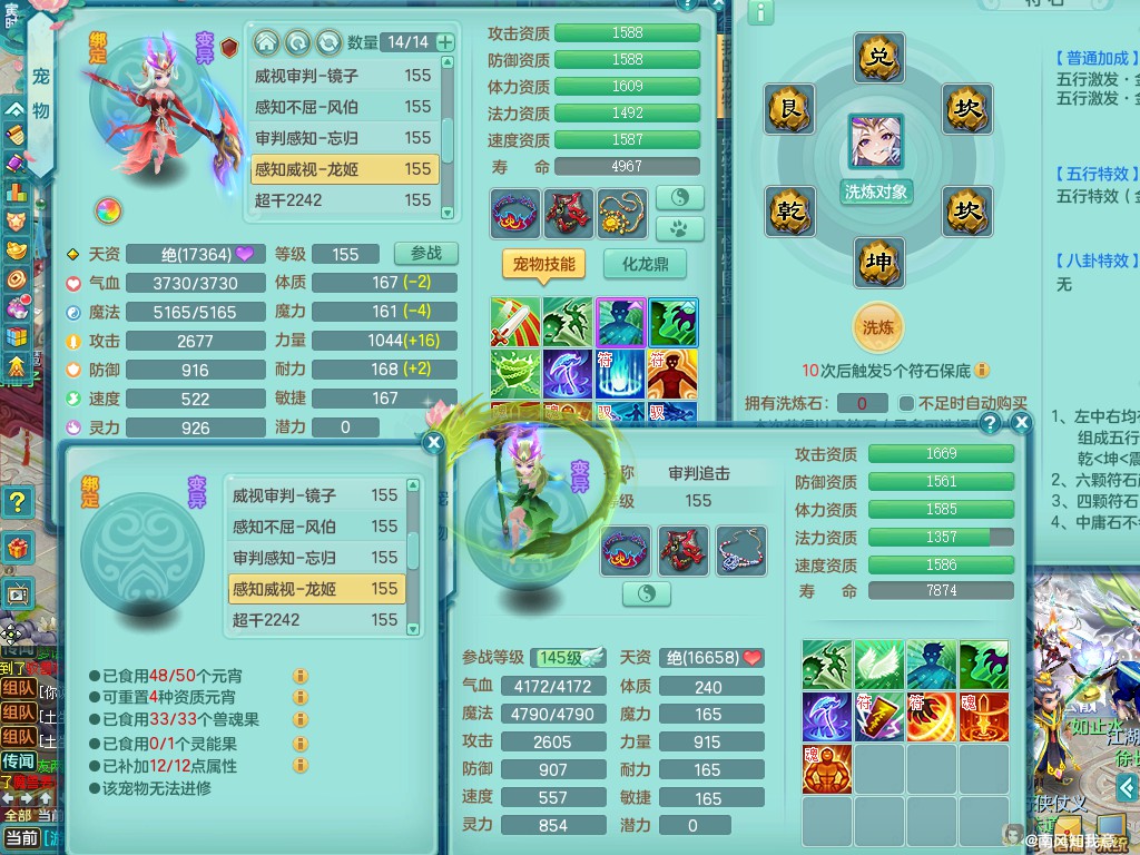 超凡入圣159ws 双人白马 精灵之舞 内丹龙+双内神(蛇马,还可存1龙1神)双龙姬 三镜子 差不多8满果子 便宜出3666