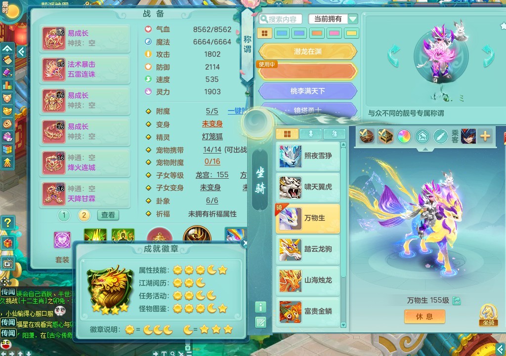 任剑逍遥159mw 四位靓号AABB 潜龙在渊 七染色坐骑 七内丹龙 双内丹神(还可存2个内神等于4内神)四镜子 13觉醒 11六字 低价出42888包