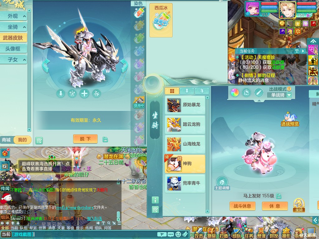阳春白雪159fm 四位靓号+潜龙在渊+泰坦西瓜冰+战马马上发财 6.0化龙鼎拉满 18格子 四龙+四内神 四特殊 六镜子 九宠物皮肤 特价2.38包