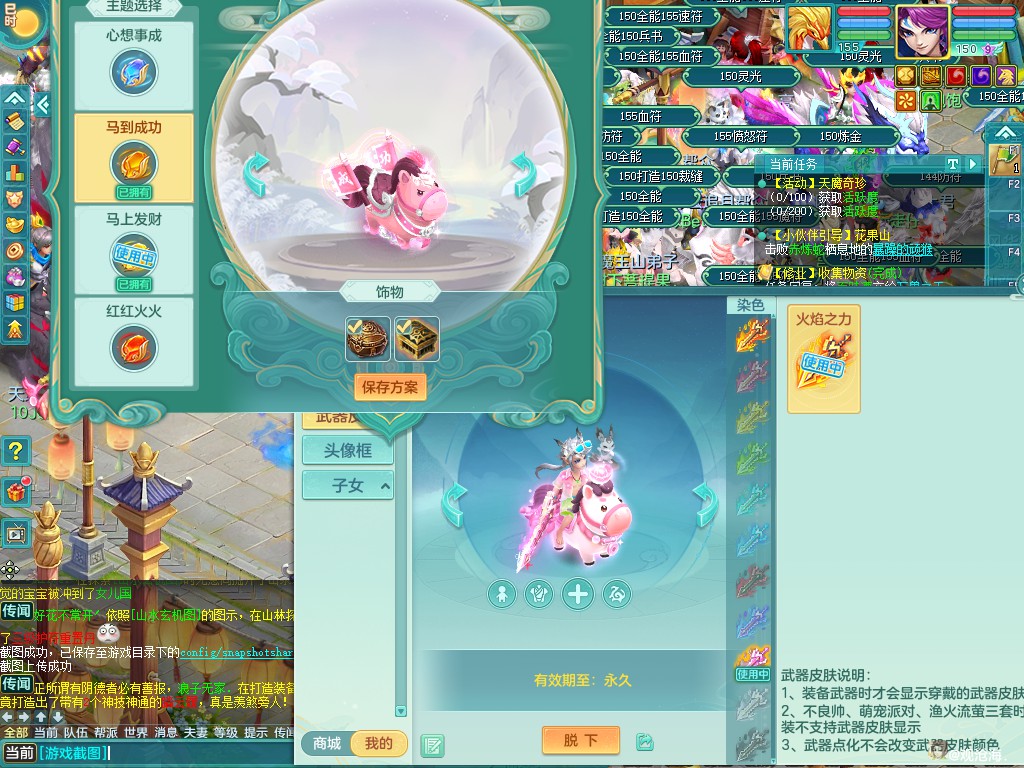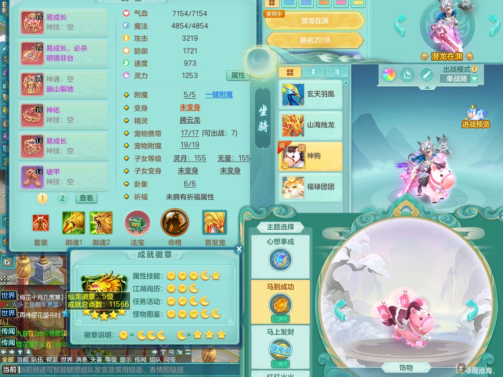 彩云追月159ws 潜龙在渊+马到成功+马上发财+火焰之力武器皮肤 三内龙双内神(还可存1内神)9觉醒8六字15满果子以上 便宜出2.2包可分