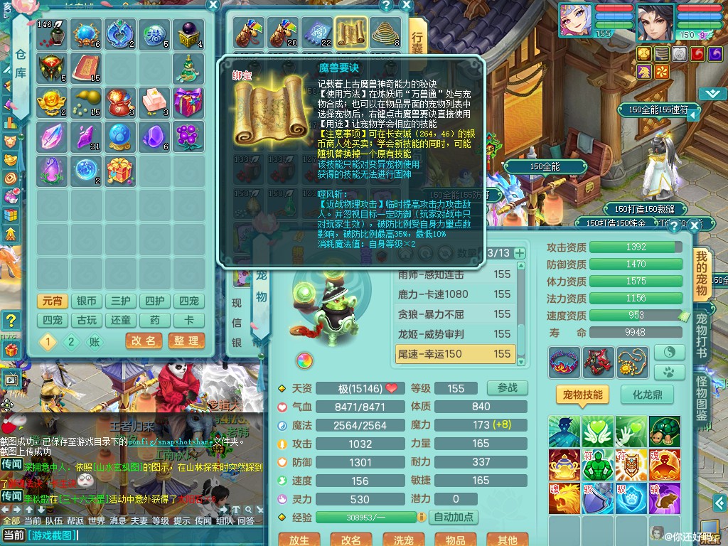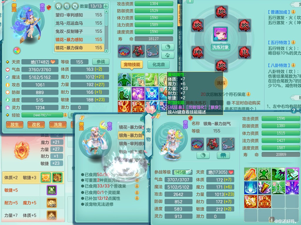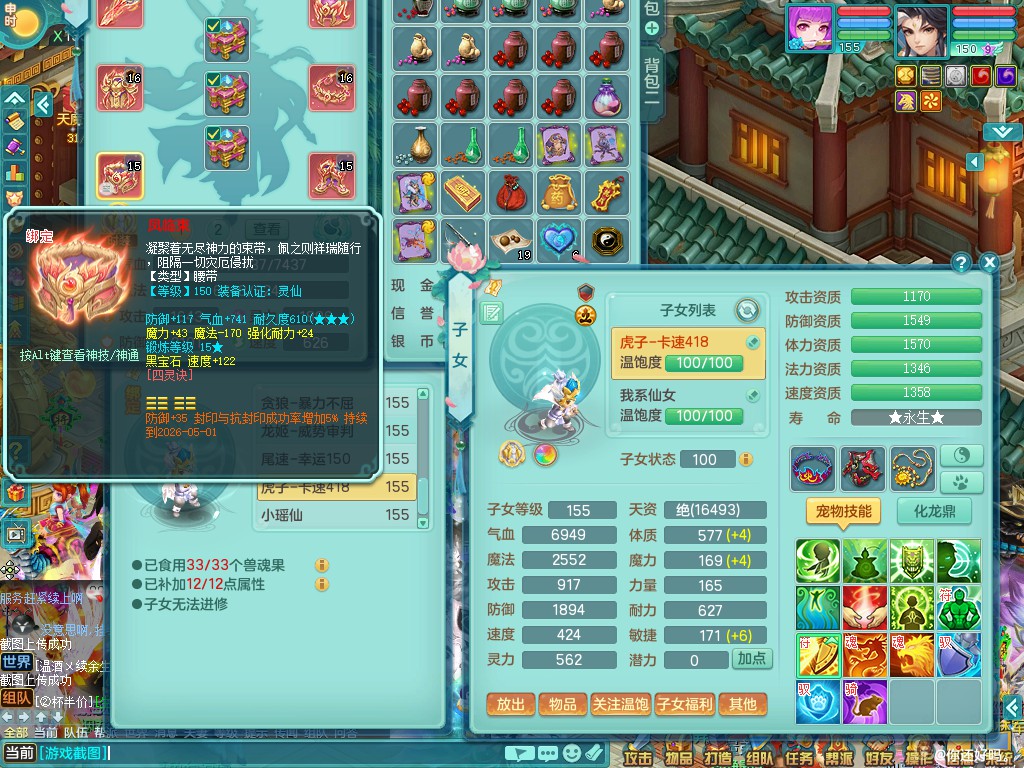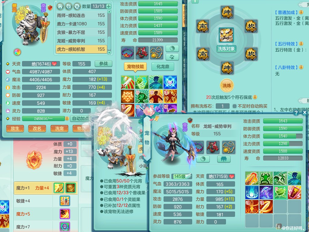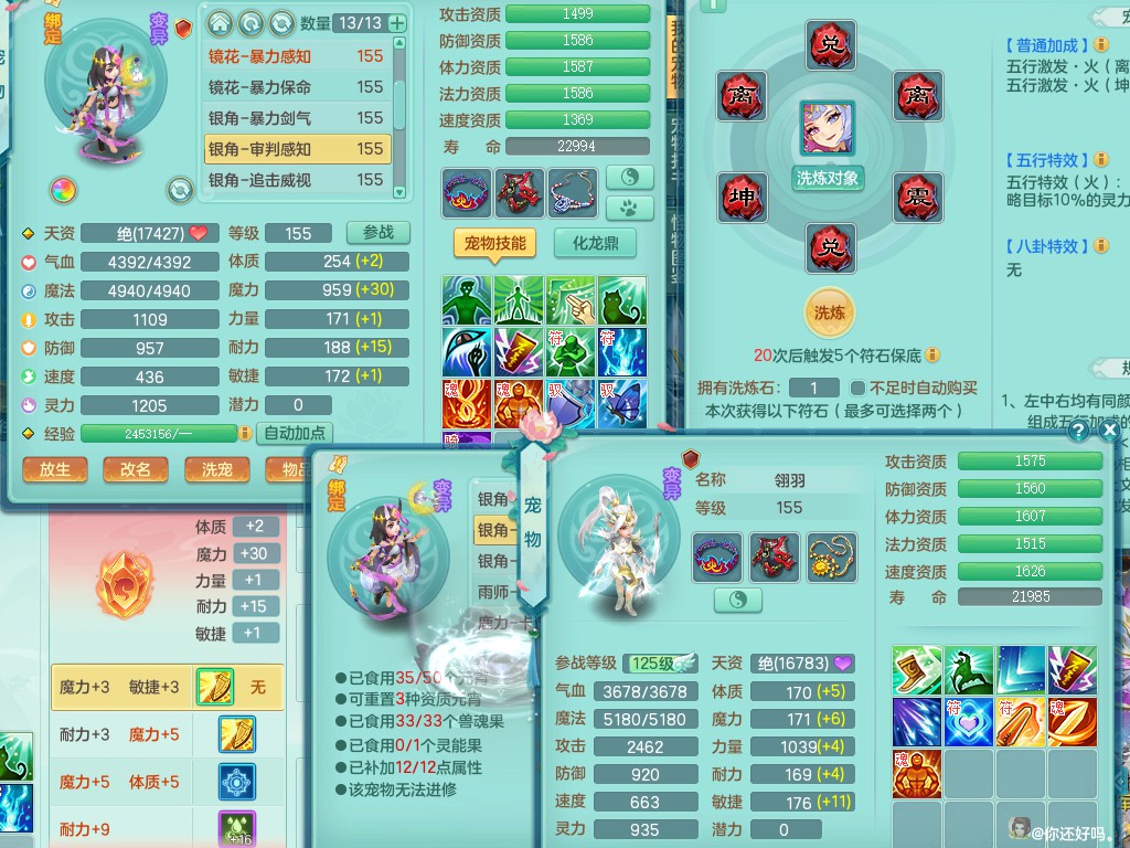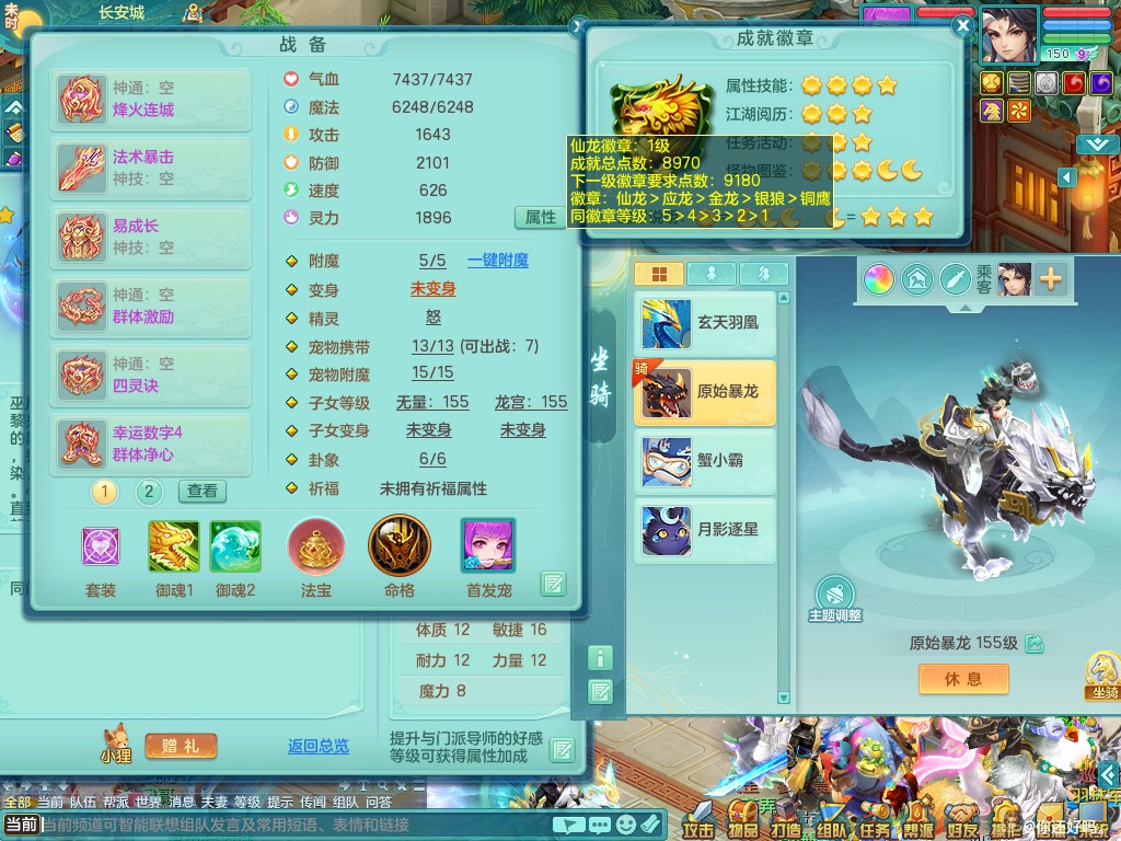 超凡入圣159lg 暴龙+染色西瓜冰 精灵之歌 一特殊噬风斩 一6技能龙姬 双镜子(还可兑)双内丹神(还能存1内)7觉醒突破 10个满果子以上