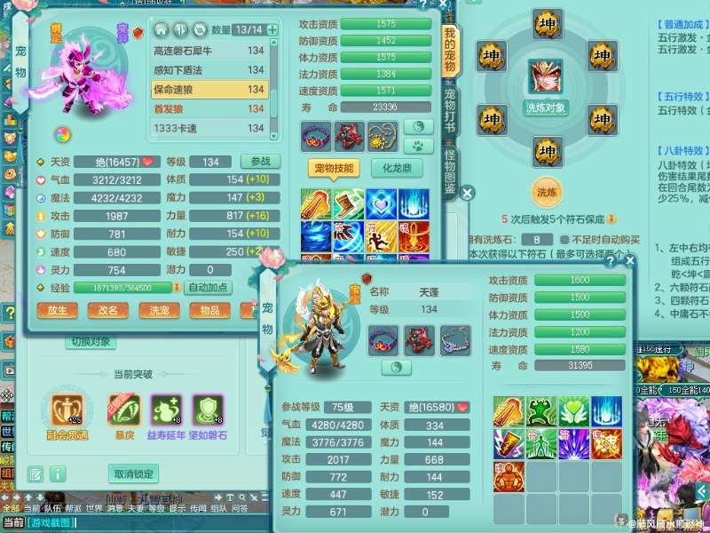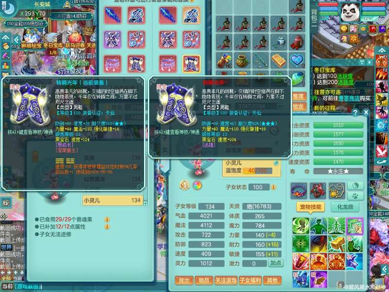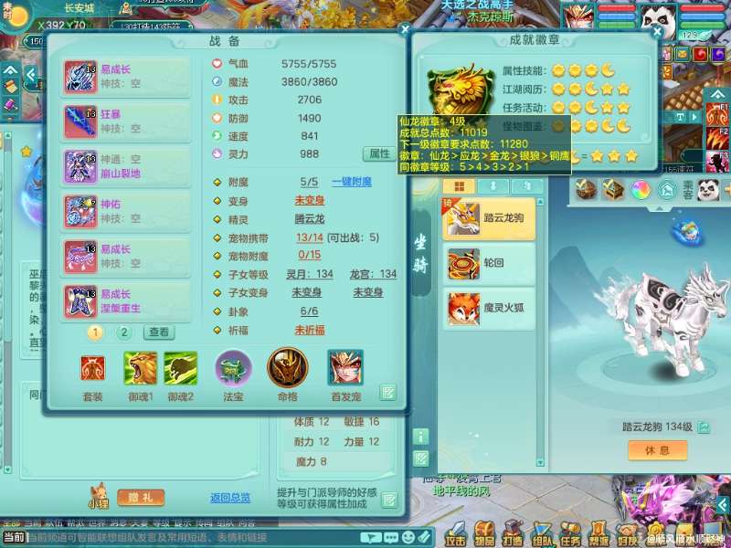 世外桃源129st 准潜龙(只差3大2小符石,其他全满)单龙 内丹蛇 12个满果子以上 同账号送个159lg 双人坐骑 精灵之歌 1888