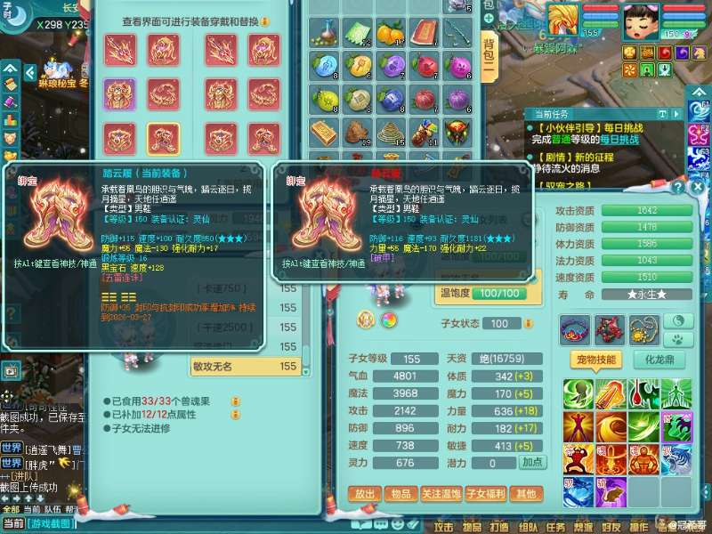 彩云追月159ws 装备好 双人老虎 5.5化龙鼎大满贯 内丹龙(存 带内)内丹神(拍)三镜子 四6字 八觉醒 七星辉特殊(登云+墨守+翻浆+灵愧+风卷+噬风斩+生命守护) 细节好 12个满果子 6666包
