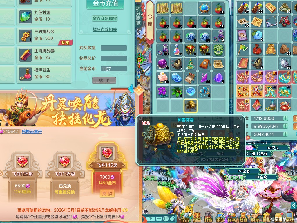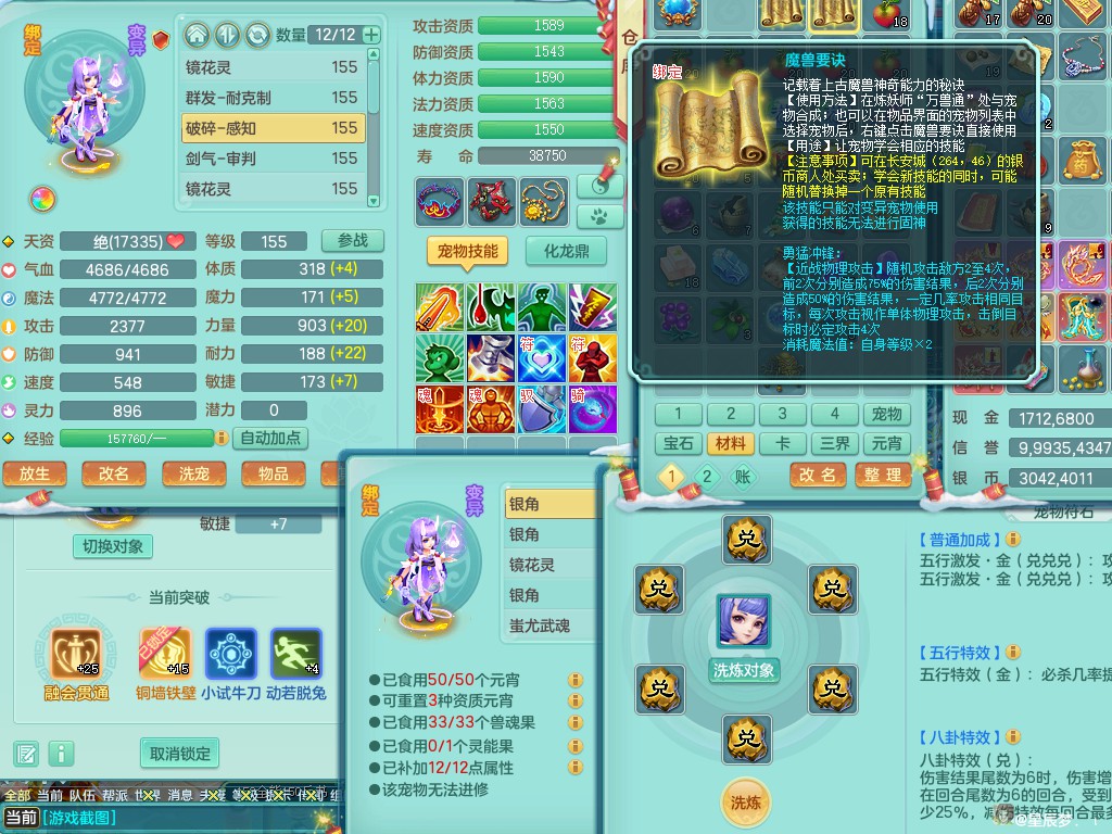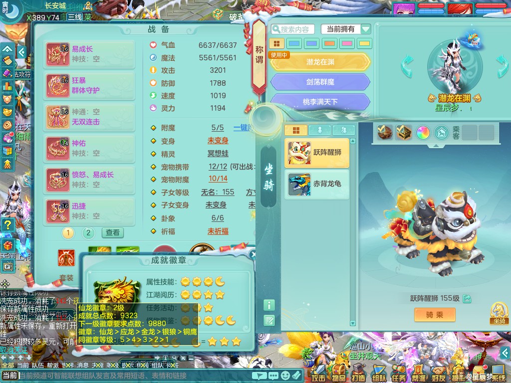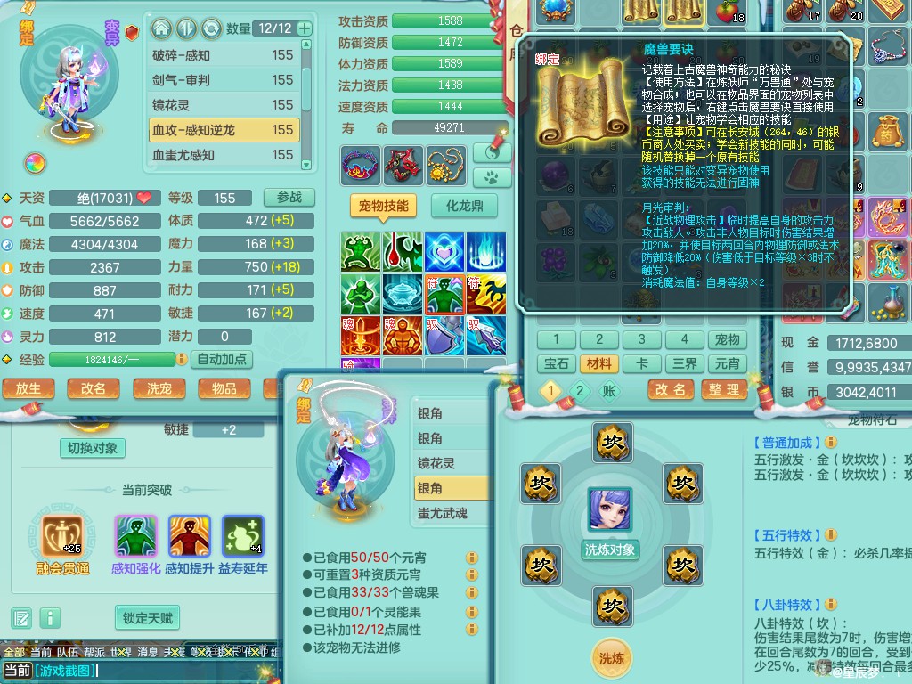 天下无双159ws 潜龙在渊 3000万swb 四星辉特殊(破碎+逆龙击+勇猛冲锋+月光)双人坐骑 三镜子(还可兑) 加仓库果子满10个 7288