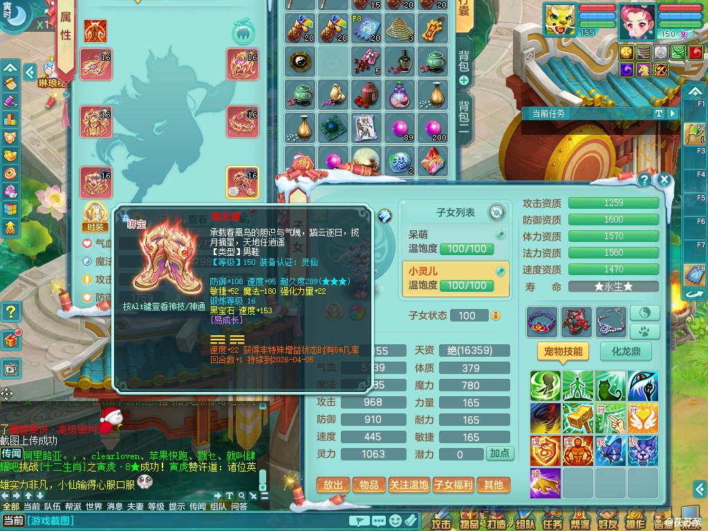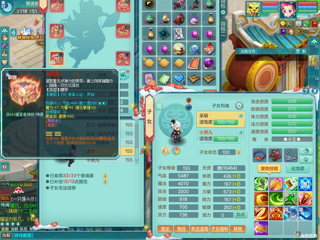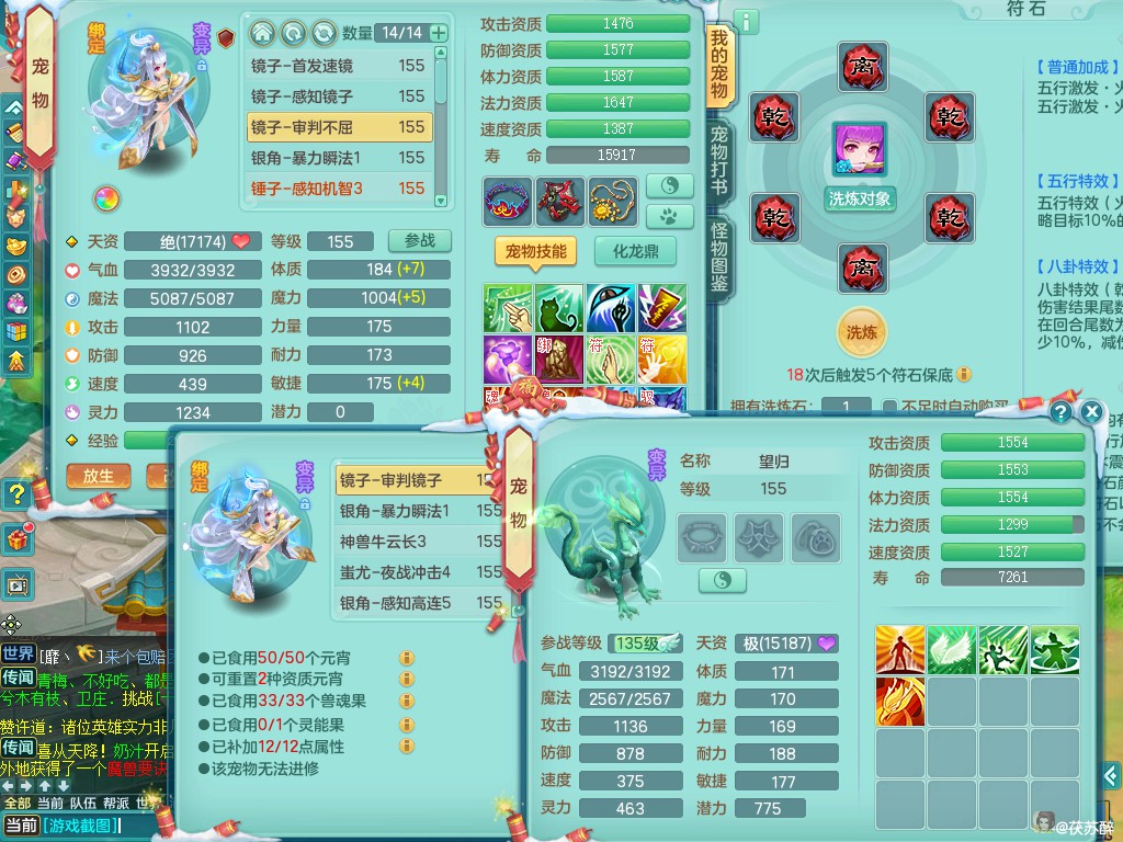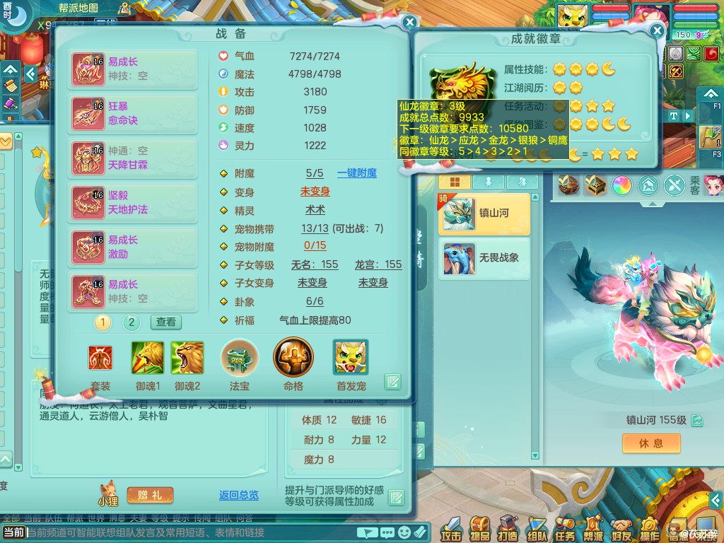 天下无双159ws 准潜龙(只差5.5化龙鼎 其他全满)双人坐骑 精灵之歌 9满果子 6500包可分