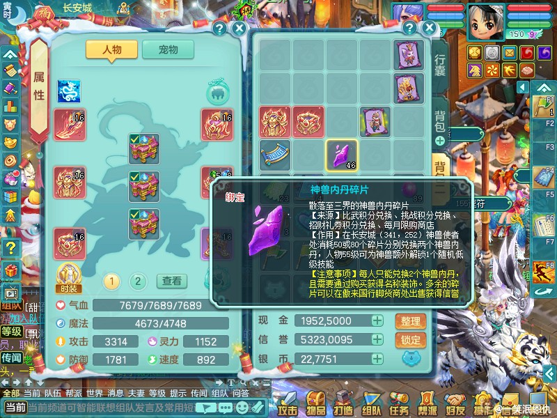 少年游159天策 双破甲毕业装备 46个内丹碎片 三镜子(还可兑一个)2222