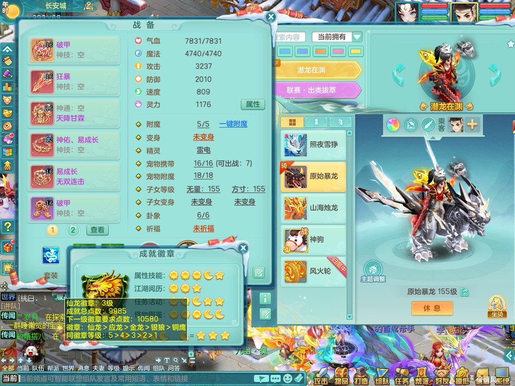 超凡入圣159tc 潜龙在渊 泰坦+西瓜冰+战马+剑皮肤 双破甲 三内龙 一内蛇(还可存2内神)1龙姬 4镜子 14觉醒 11六字 3.8包