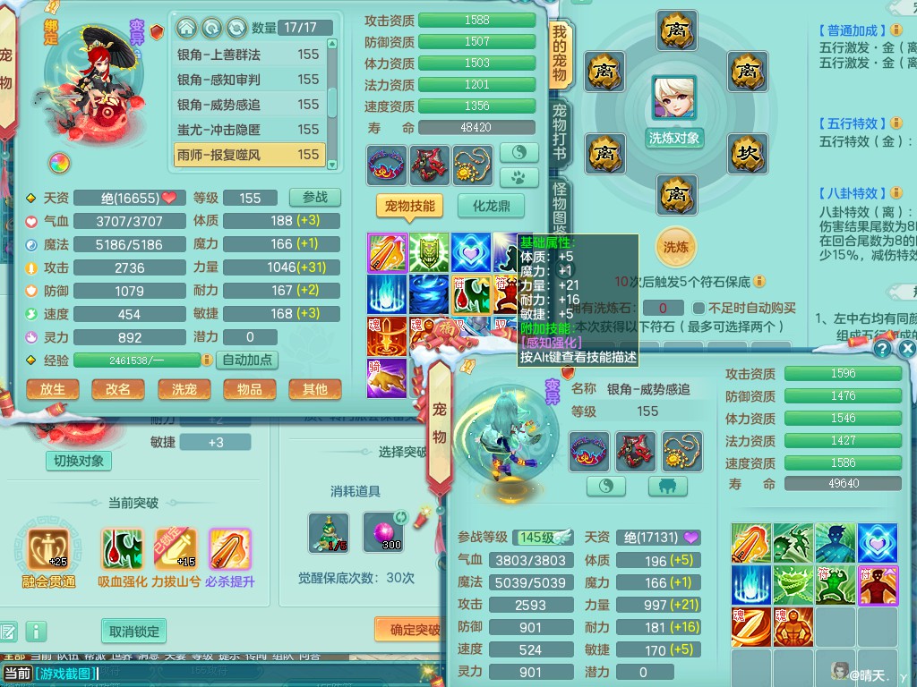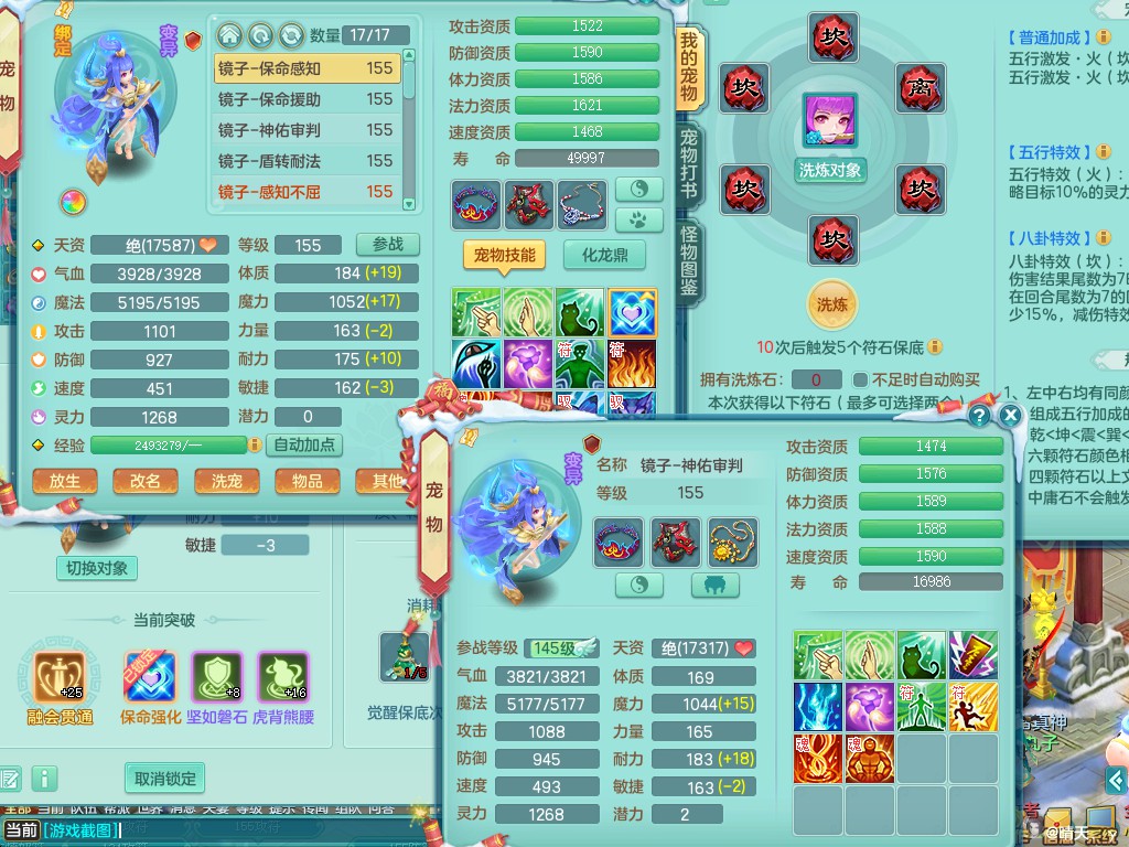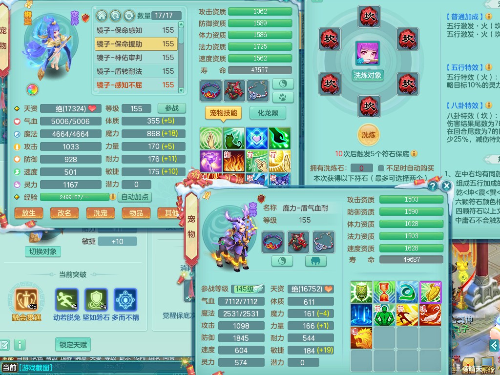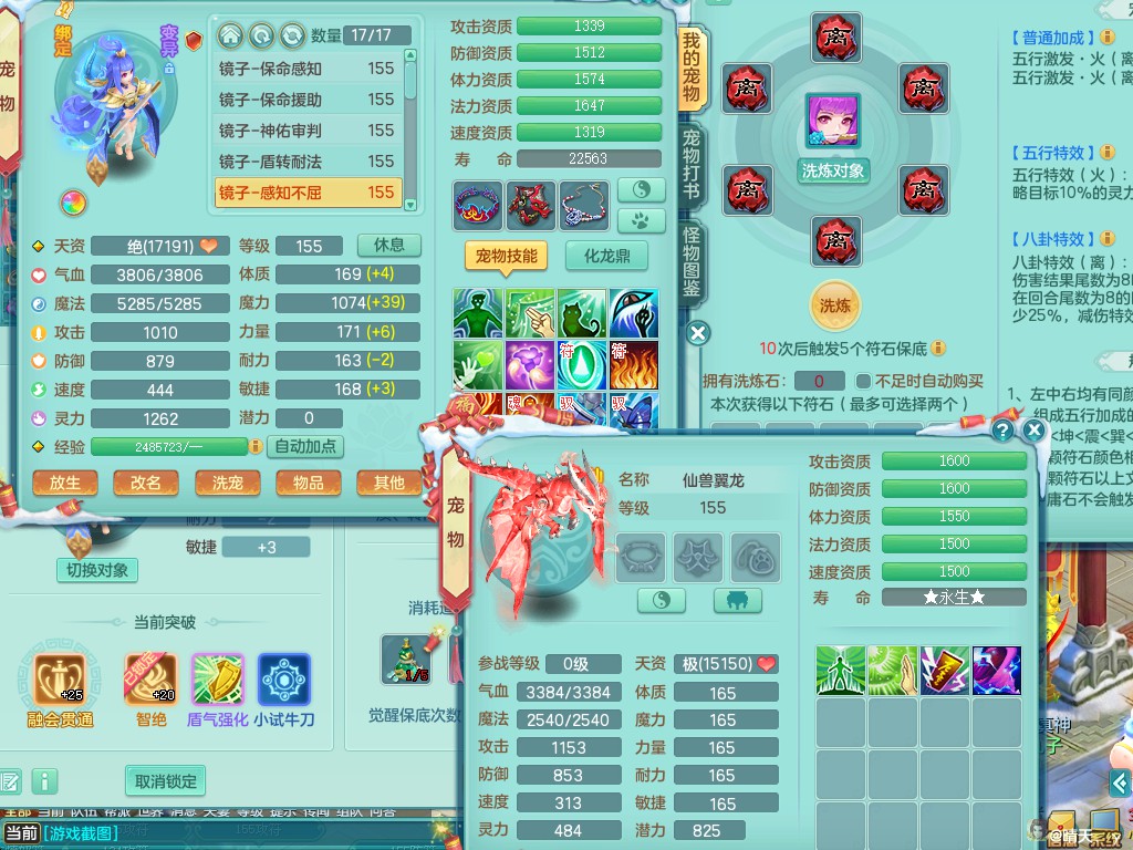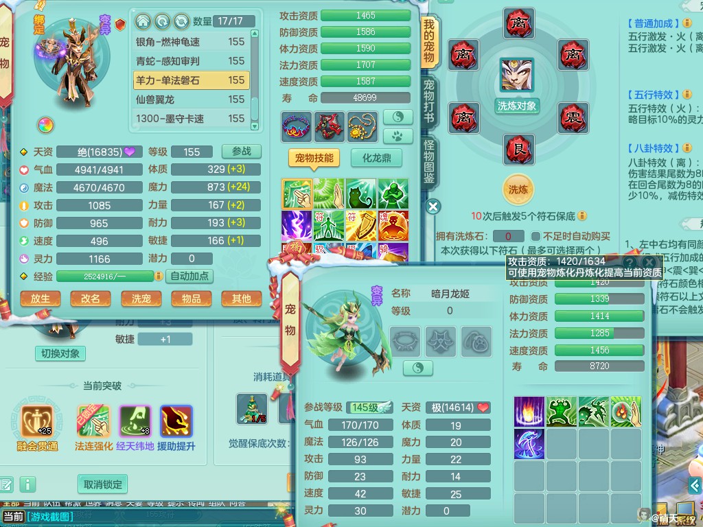 锦绣河山159pt 精灵之舞 永久17宠物格子 单龙 内丹蛇 15个觉醒突破 3六字 5五字 15个满果子以上 5500包可分