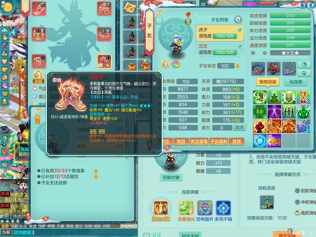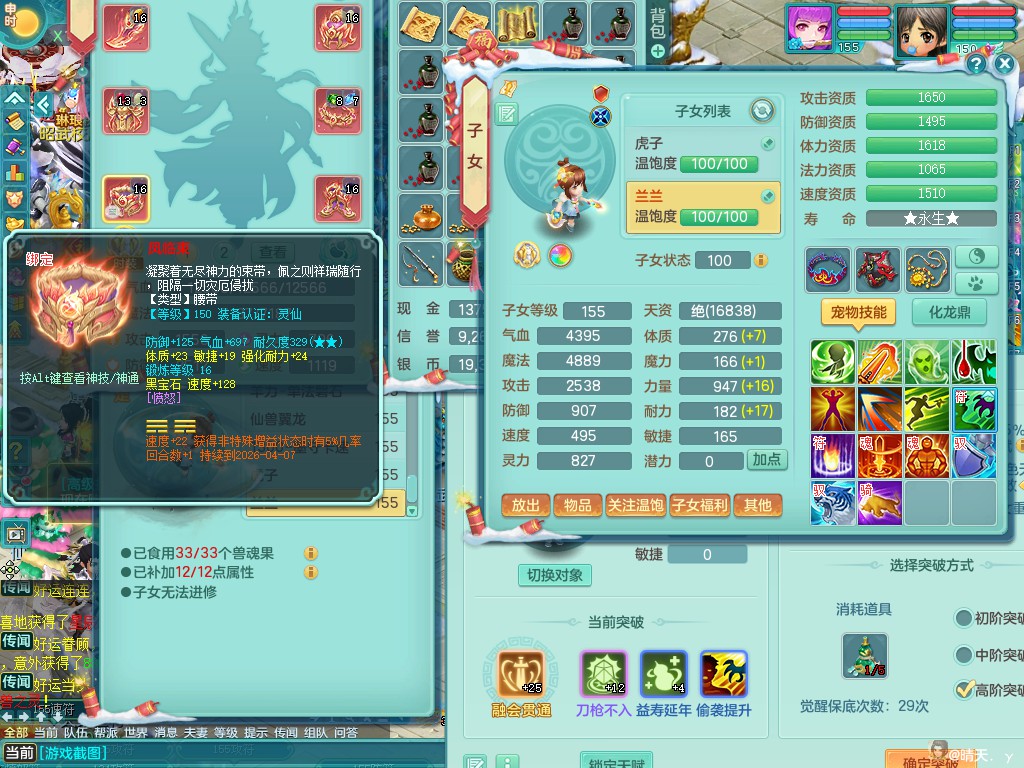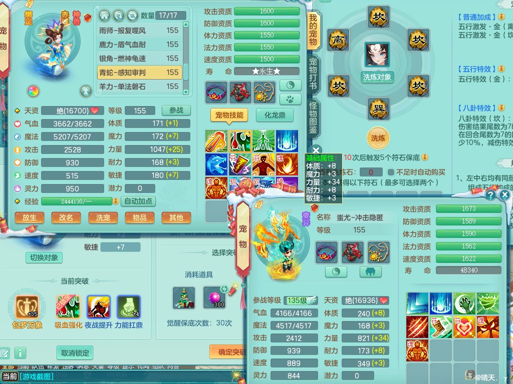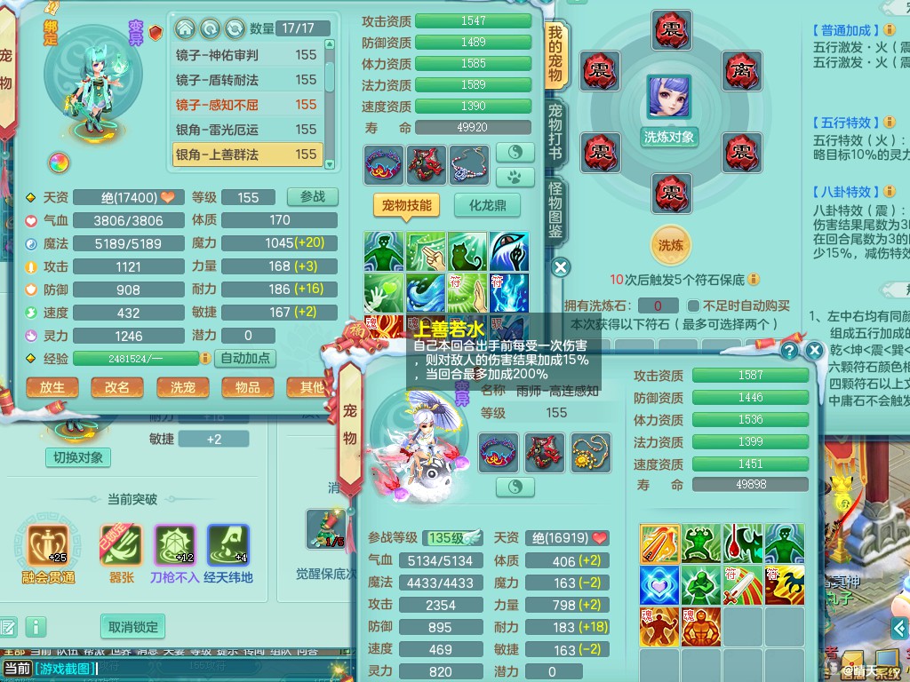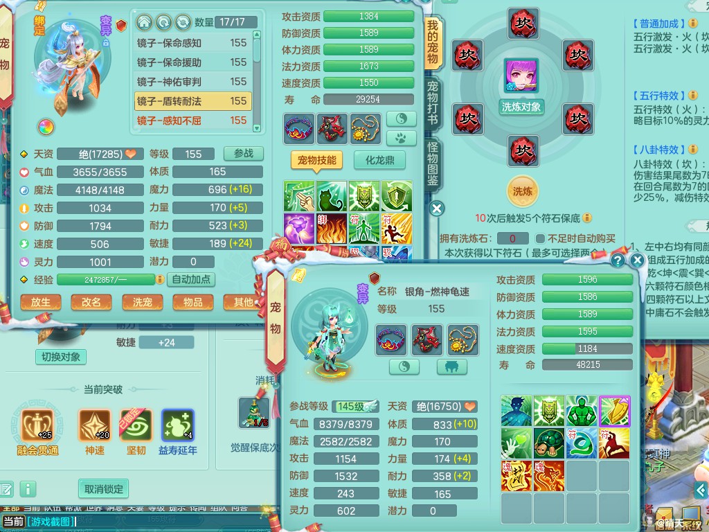 锦绣河山159pt 精灵之舞 永久17宠物格子 单龙 内丹蛇 15个觉醒突破 3六字 5五字 15个满果子以上 5500包可分